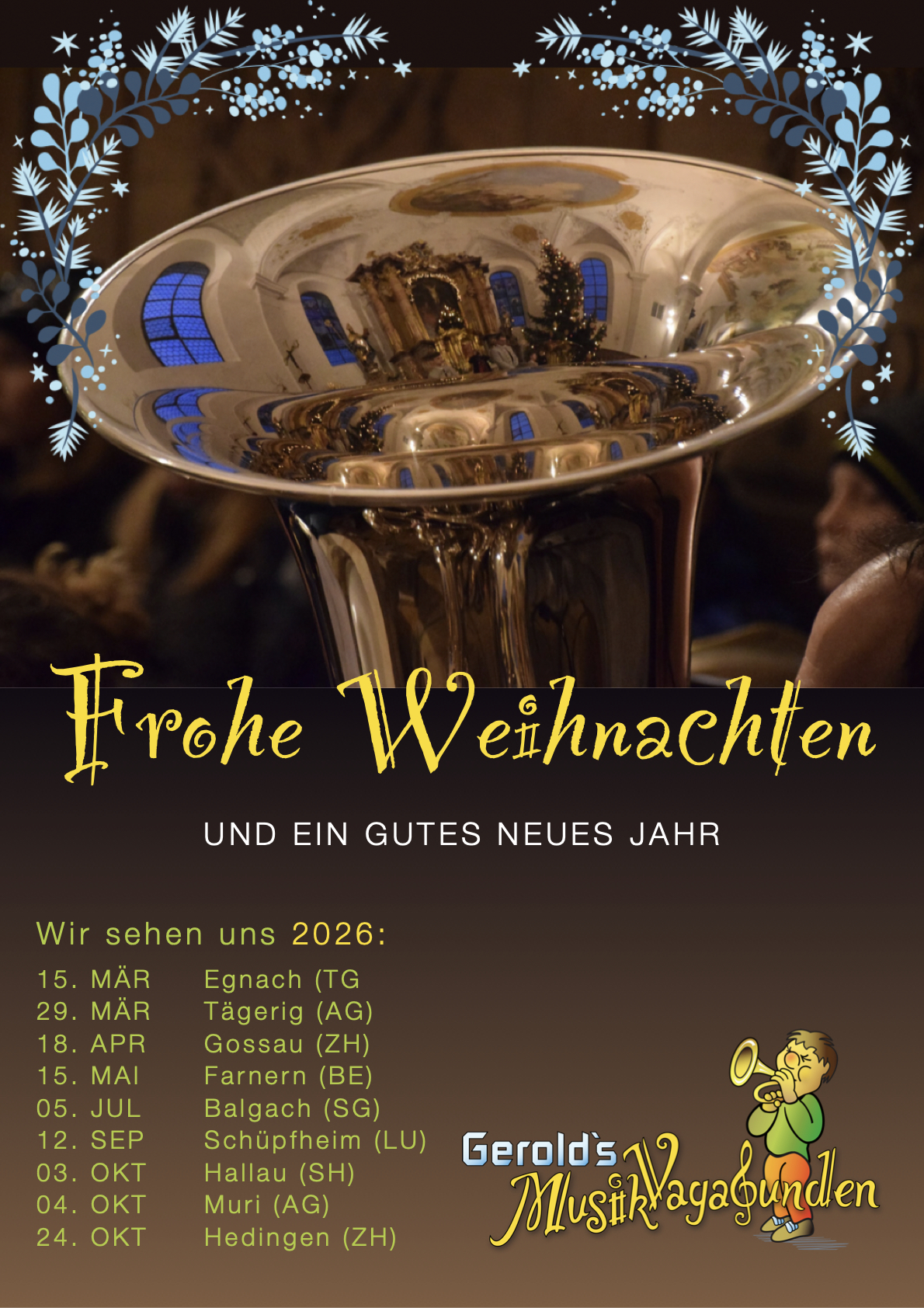 Wir freuen uns bereits auf die kommende musikalische Saison – schaut auf unserer Webseite vorbei – die Daten werden laufend erneuert. Wir spielen 2026 bereits schon in vielen Ecken der CH – sicherlich auch bei euch in der Nähe.